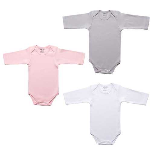 بادی آستین بلند نوزادی دخترانه آمورا مدل plain مجموعه 3 عددی