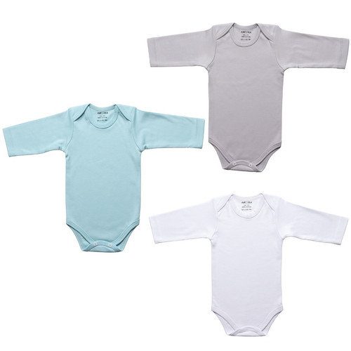 بادی آستین بلند نوزادی پسرانه آمورا مدل plain مجموعه 3 عددی