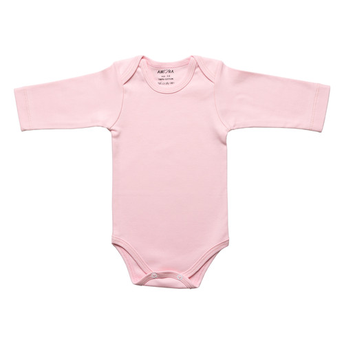 بادی آستین بلند نوزادی آمورا مدل plain رنگ صورتی