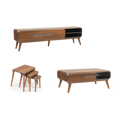 میز پذیرایی نگین چوب مدل انزو مجموعه 4 عددی