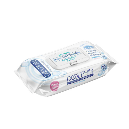 دستمال مرطوب پاک کننده آرایش دلفین مدل 001 بسته 60 عددی