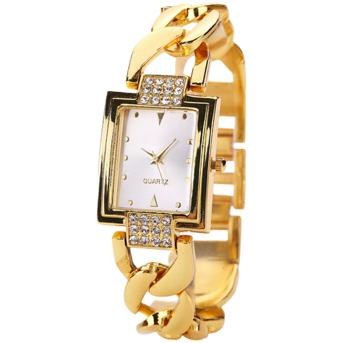ساعت مچی عقربه ای زنانه مدل قاب نگین دار بند دستبندی فلزی کد 1