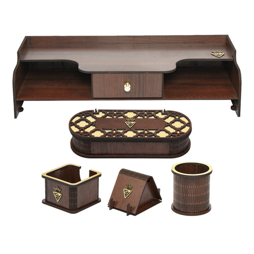 ست لوازم اداری رومیزی مدل 509-WOOD مجموعه 9 عددی