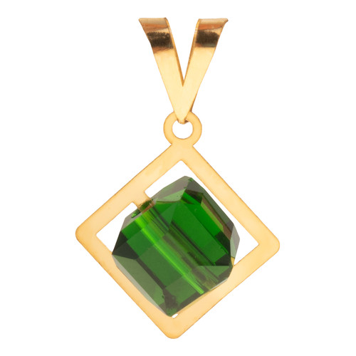 آویز گردنبند طلا 18 عیار زنانه ناریا مدل مکعب رنگ سبز